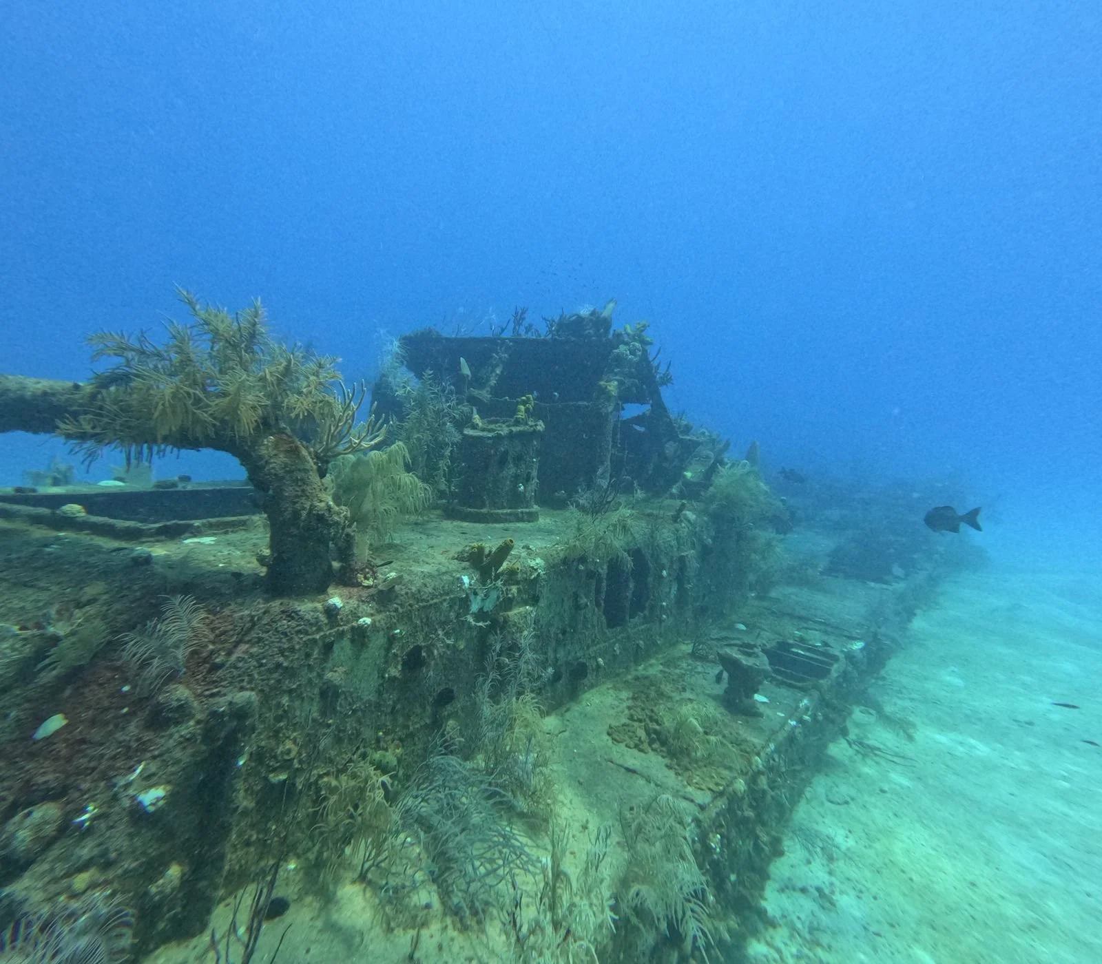 Dive locations: Doc Poulson shipwreck just outside Seven Miles Beach, 60 feet depth.